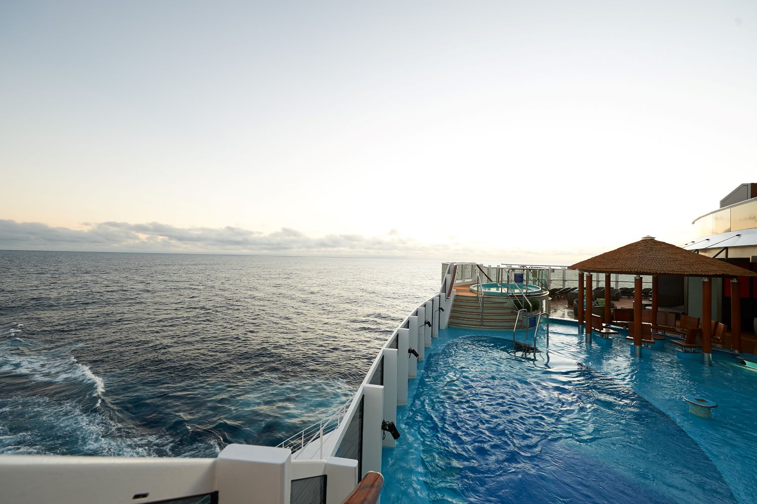 Egy lenyűgöző, háromszintes átrium a hajó jobb oldalán, amely az óceánra néz, és éjszaka szórakoztató helyszínné alakul.